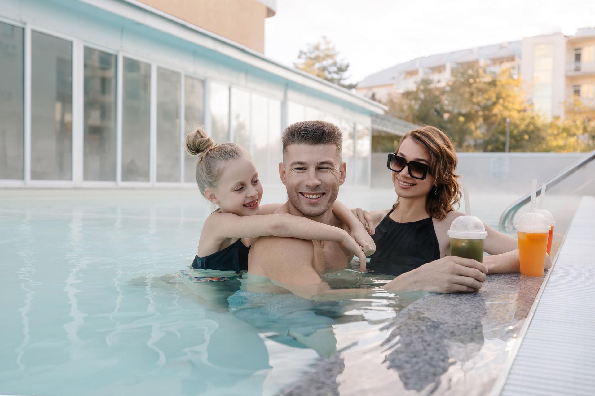 Для вашего комфорта бассейн разделен на взрослую и детскую чаши.