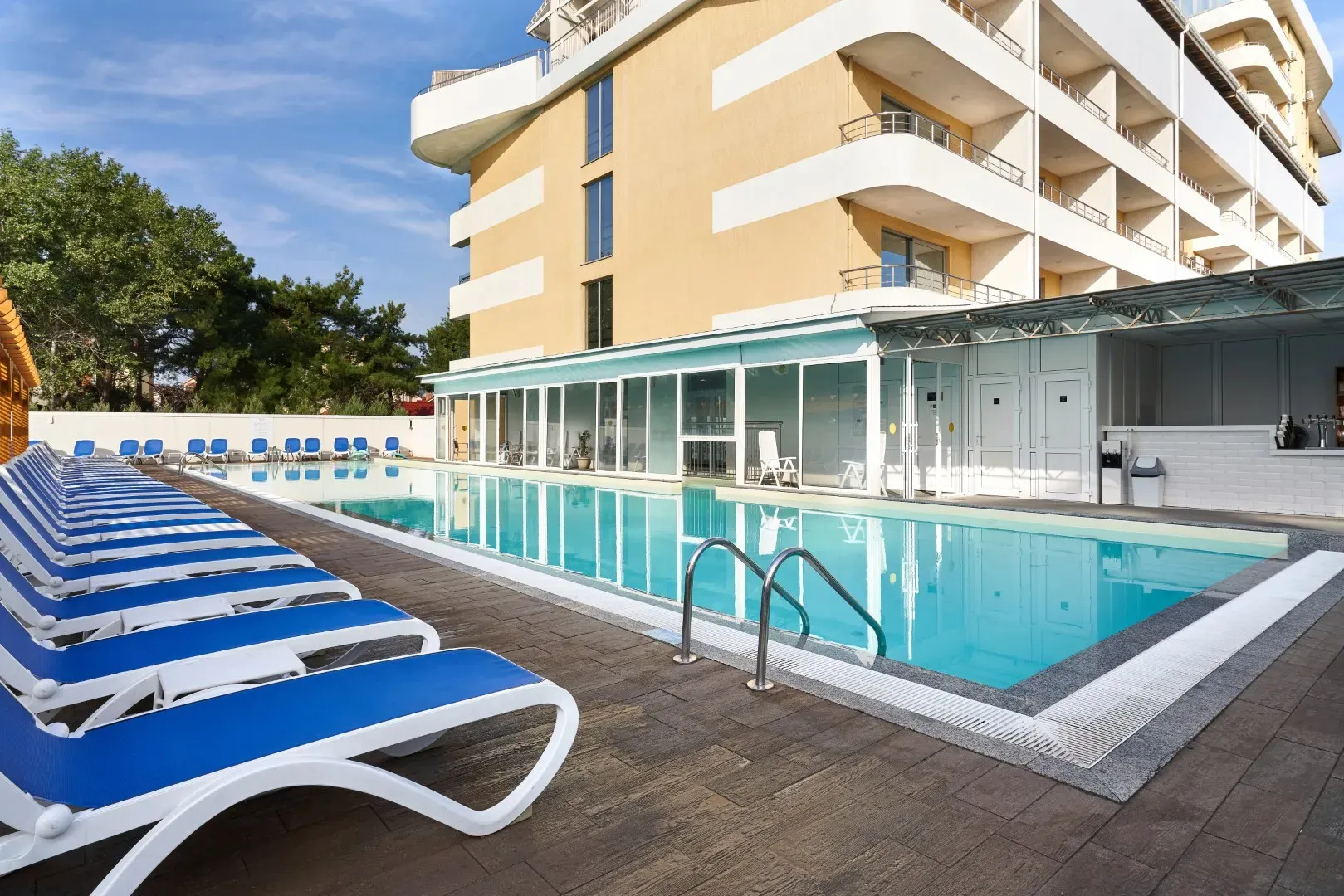 Бассейн отеля расположился под открытым небом и имеет постоянную комфортную температуру для плавания 22-26 градусов.