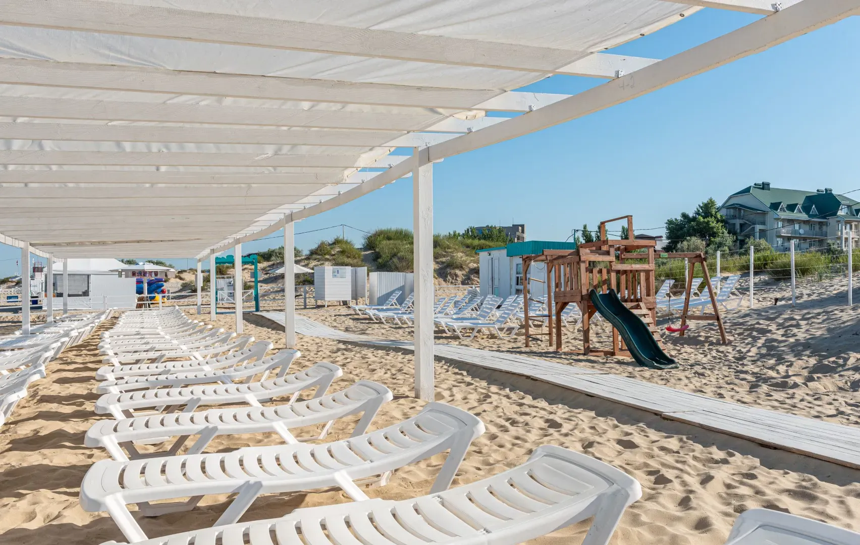Из развлечений гостям доступны: детская игровая площадка, площадка для волейбола, сцена для анимационных мероприятий, прокат водного инвентаря, сап-доски.